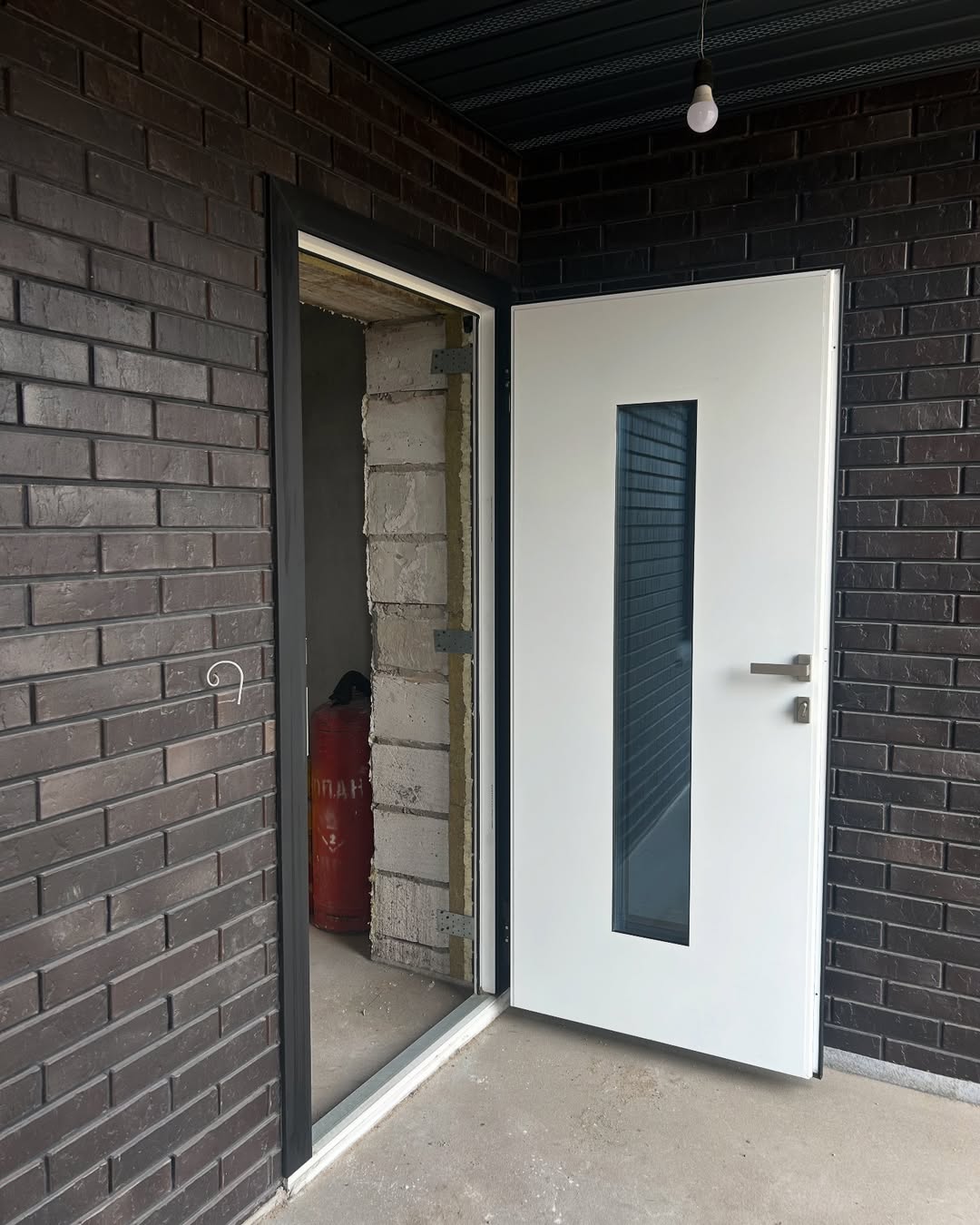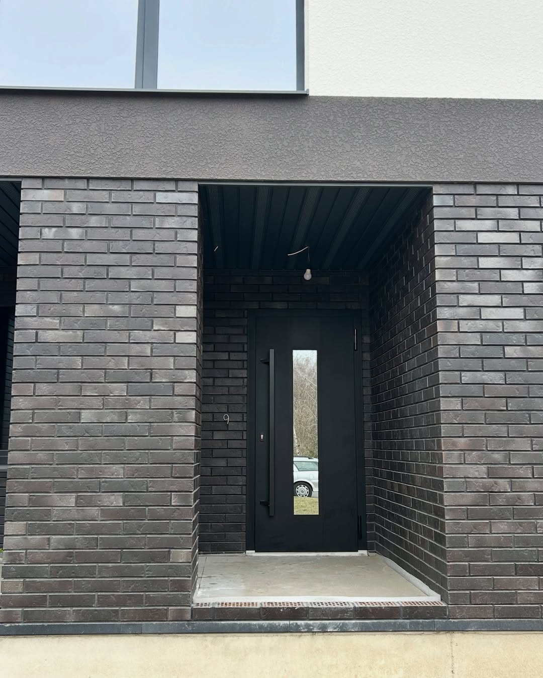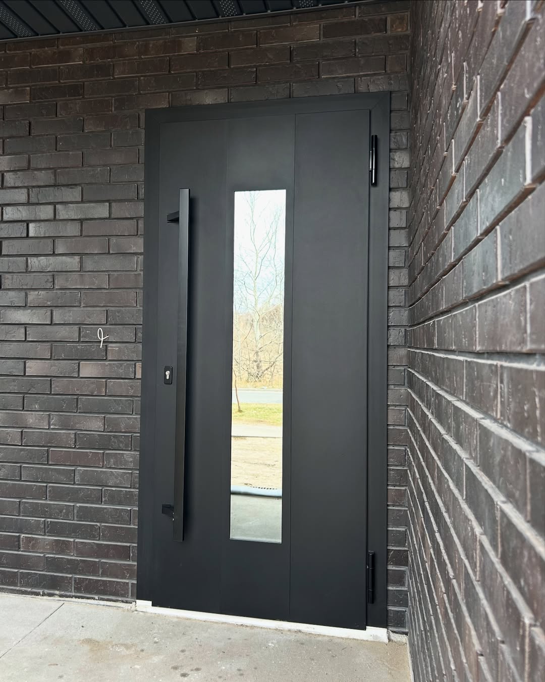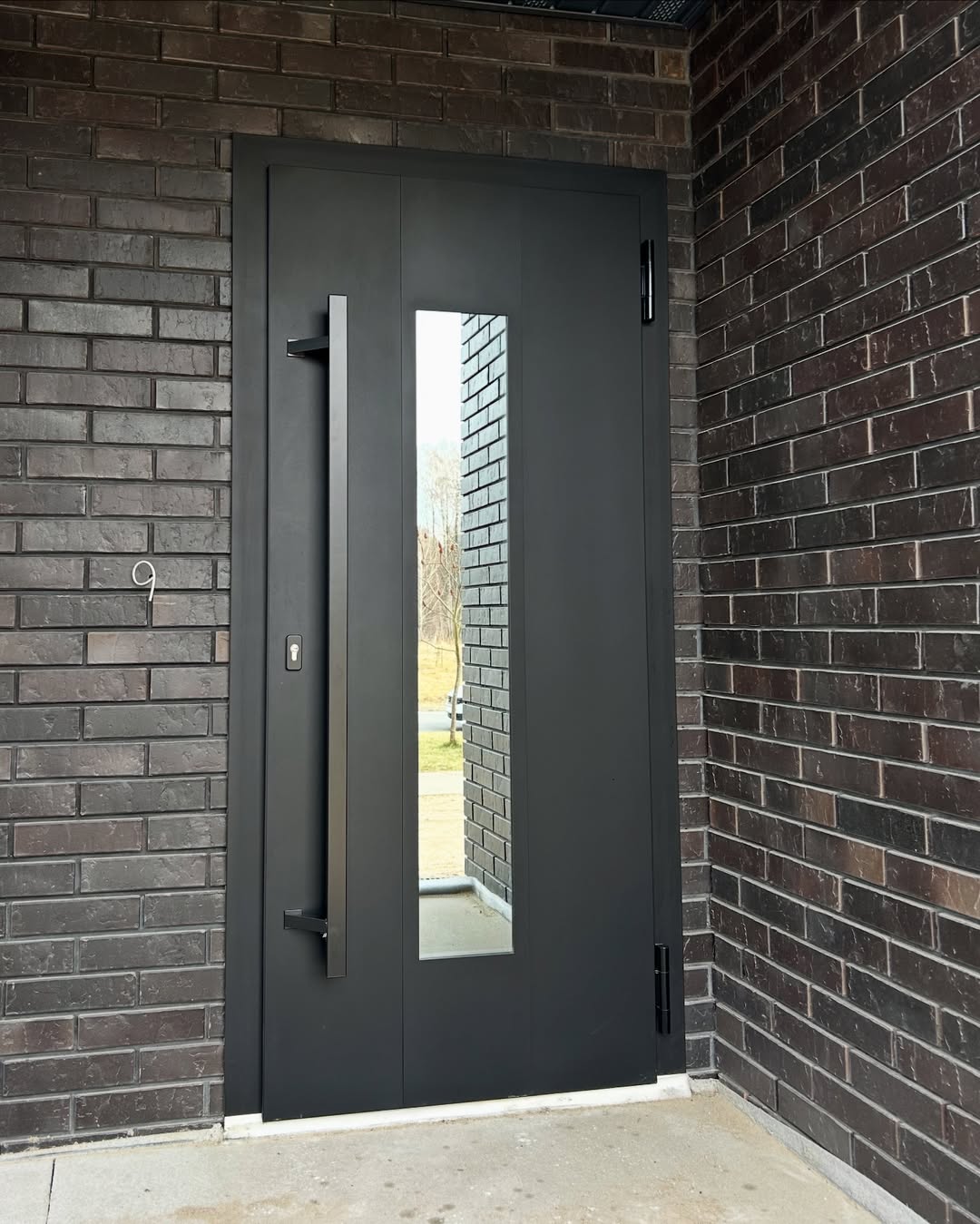 Матовая черная дверь А-023 на фасаде дома